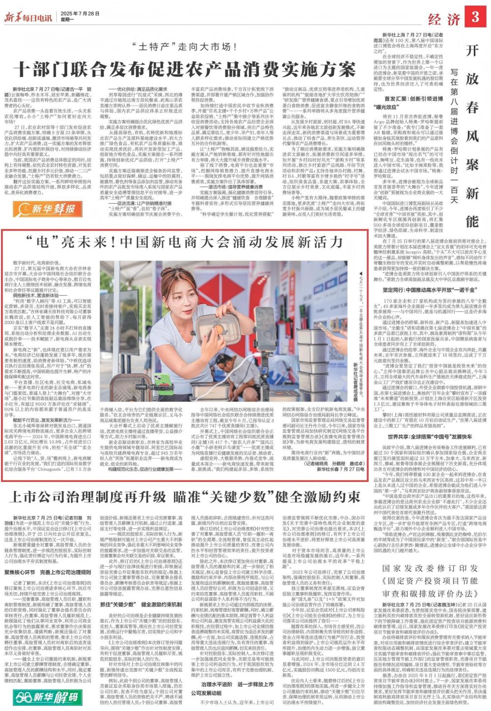 國家市場監督管理總局網絡交易監督管理司副司長王丹丹介紹,今年以來,國家市場監督管理總局加快研究制定《網絡交易平臺規則監督管理辦法》《直播電商監督管理辦法》等,為新電商發展構建穩定、透明的制度環境。