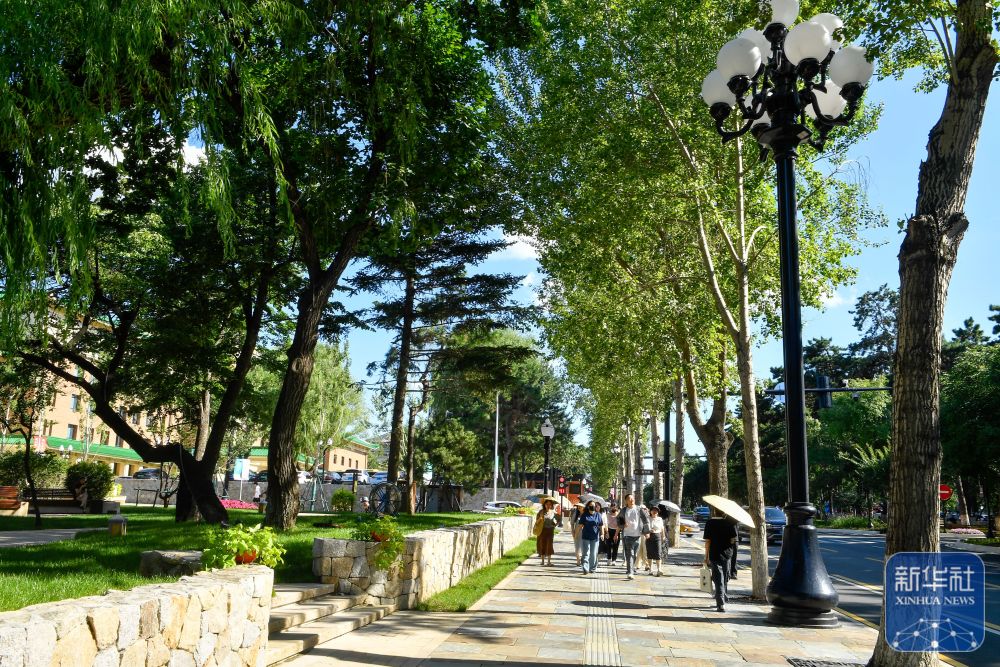7月30日,游客游覽長春新民大街。