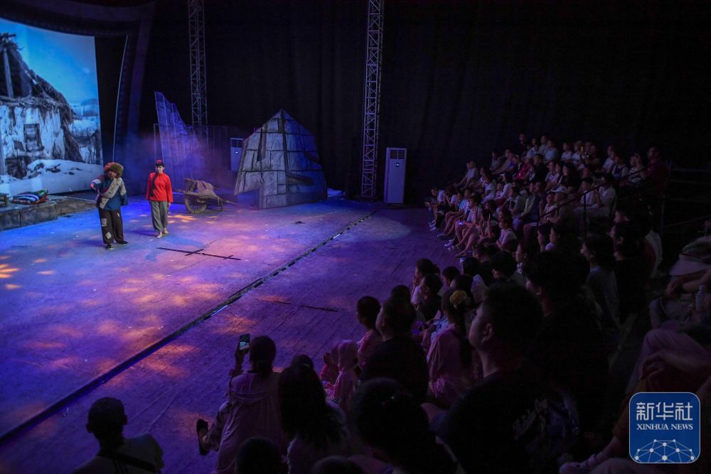 ↑ 8月7日,游客在長影舊址博物館觀看電影歌舞劇《白毛女》。