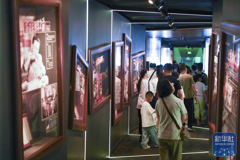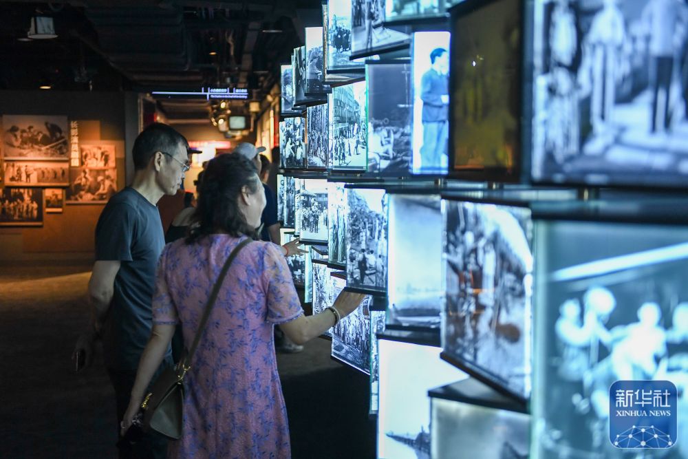 ↑ 8月7日,游客在長影舊址博物館參觀。