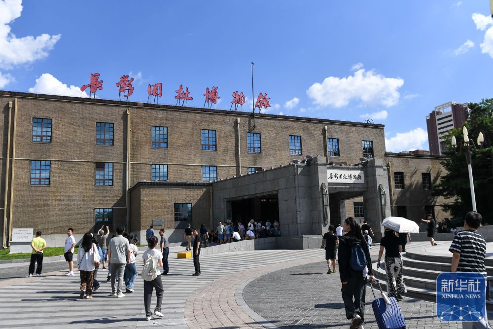 ↑ 8月7日,游客走進長影舊址博物館參觀。
