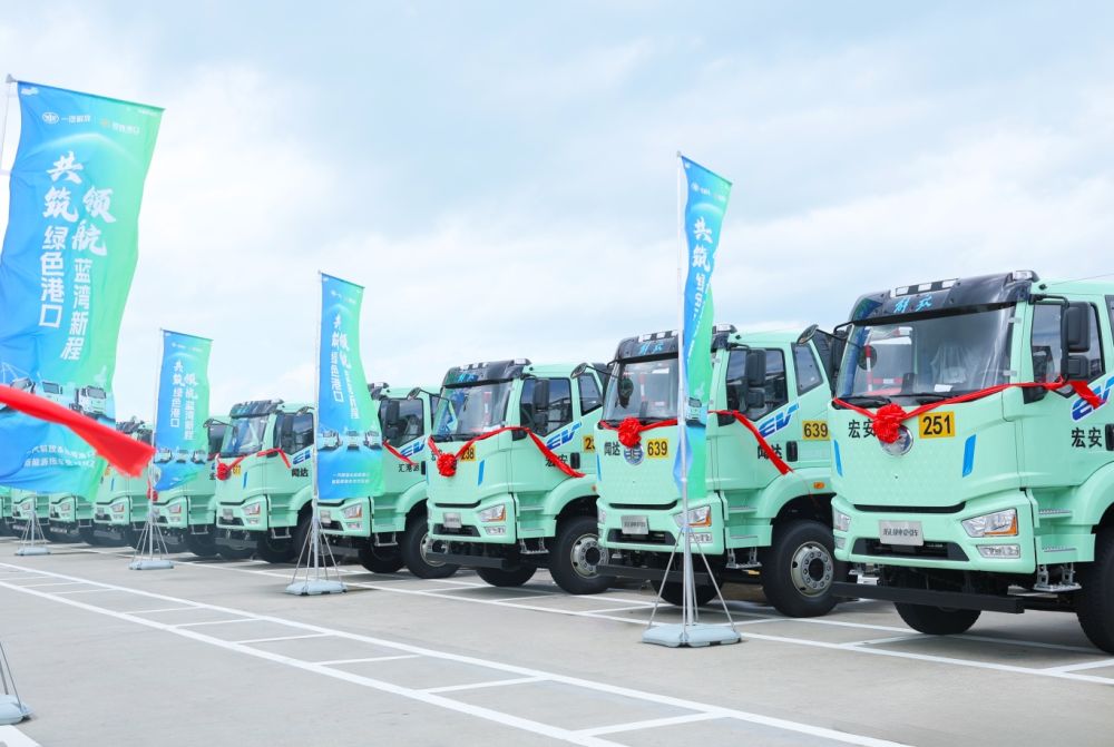 ▲一汽解放與招商港口185輛新能源港口牽引車交付